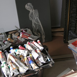 Jedes Sujet hat sein eigenes Format: Die Landschaften der Künstlerin wandern mitunter über ein Triptichon mit gewaltigen Ausmaßen. „Der Sandsturm“, 1,30 m x 1,80 m groß, der sich über eine weite Küstenlandschaft bewegt, braucht diesen Raum zur Entfaltung. „Matthaeus der Engel“ schwingt seine Flügel in stattliche 1,90 m Höhe empor. Zwei „Birnen auf Tuchfühlung“ hingegen sind im Format 90 x 90 cm gut aufgehoben und ein einziger „Apfel“ beansprucht nicht mehr als 30 x 30 cm. Dass sie jedem Werk seinen charakteristischen, ihm gemäßen und sehr individuellen Rahmen – oder auch keinen – zuordnet, liegt ebenfalls ganz im künstlerischen Ermessen der Malerin. Eines wird jedoch deutlich: Der Rahmen passt immer!